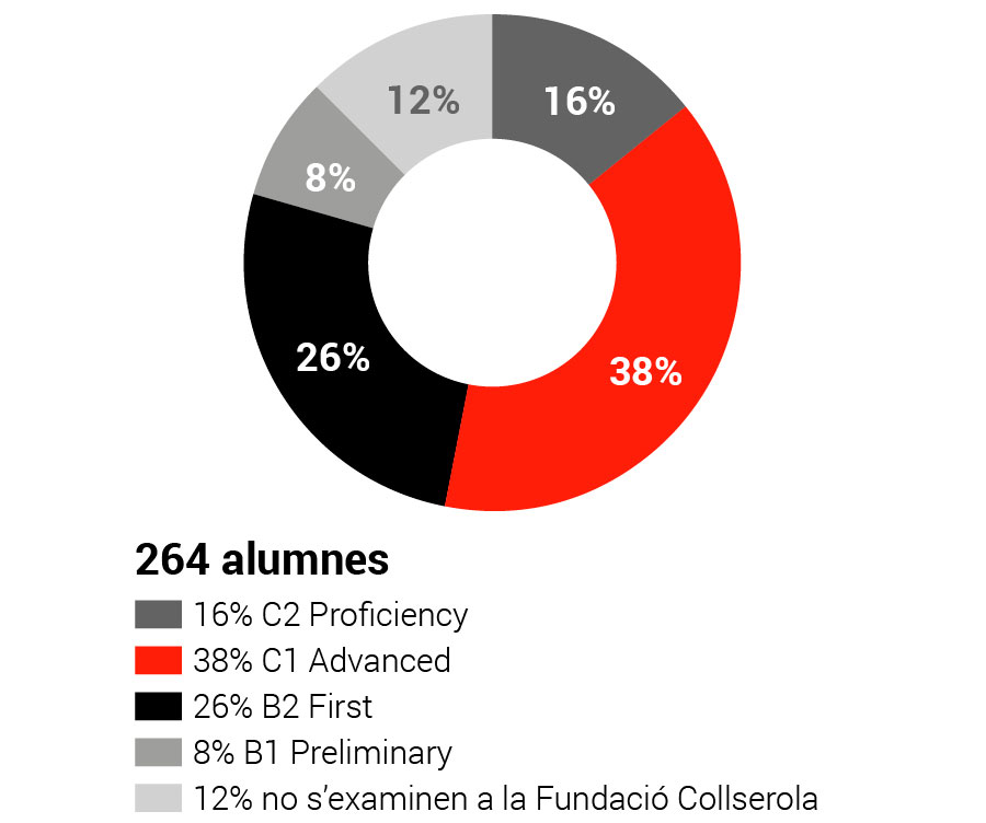 Els resultats en Llengua Anglesa que obté el nostre alumnat en acabar l’escola reflecteixen el seu bon nivell de competència comunicativa i mostren una progressió adequada al llarg de les diferents etapes que està clarament orientada a la continuïtat dels estudis en un entorn educatiu i social cada vegada més internacional.