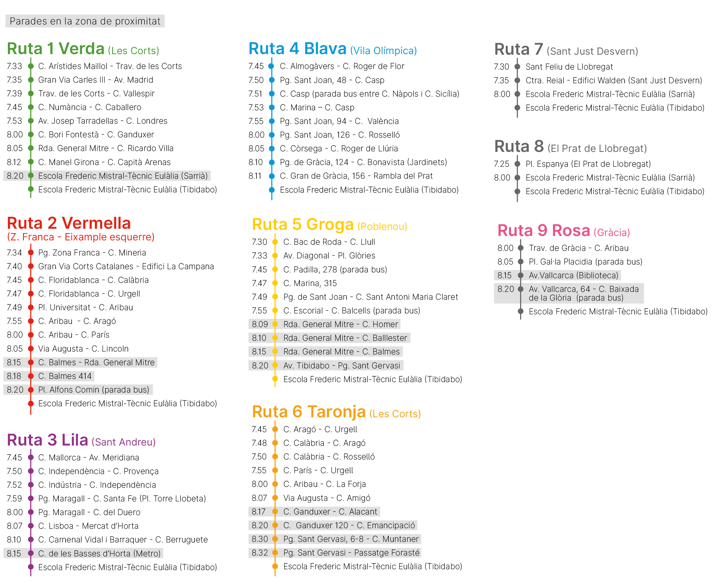 El servei de transport escolar recull i deixa els i les alumnes el més a prop possible de casa. L’escola també disposa d’un servei de llançadora entre els edificis de Sarrià i de Tibidabo (i viceversa).